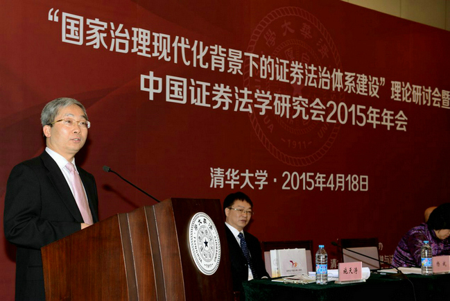 清华大学副校长杨斌代表清华大学对中国证券法学研究会2015年年会的召开表示最热烈的祝贺。