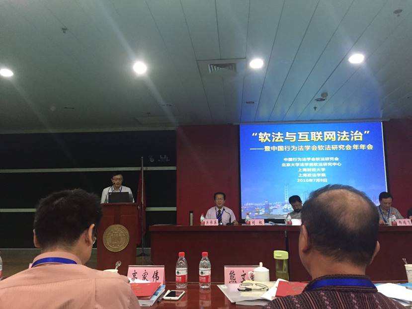 2016年7月9日,“软法与互联网法治”暨中国行为法学会软法研究会2016年年会在上海财经大学召开。会议由中国行为法学会软法研究会、北京大学开云kaiyun官网软法研究中心、上海财经大学以及上海政开云kaiyun官网联合举办。开云刘权博士应邀出席此次年会。