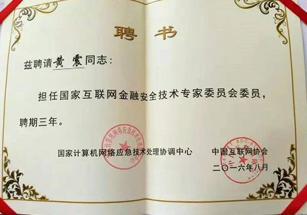 2016年8月26日下午,在工业和信息化部指导下,由国家互联网应急中心和中国互联网协会主办的“国家互联网金融安全技术专家委员会成立大会”在北京隆重召开。