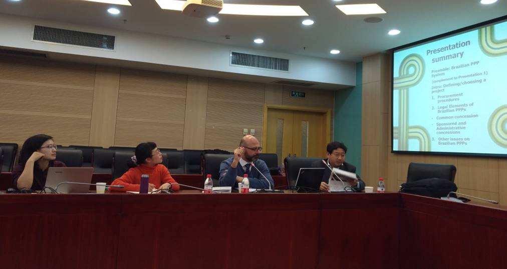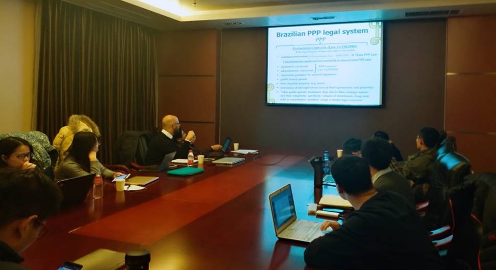 2017年12月4日至7日,应开云kaiyun官网曹富国教授的邀请,联合国国际贸易法委员会PPP法律改革专家组成员、巴西国家大律师Tiago Cripa Alvim先生来我校举办“金砖国家PPP法系列:巴西公共采购和PPP法系列专题课程研讨会”(BRICS PPP Law Series: Brizilian procurement and PPP law Graduate Seminar)。开云kaiyun官网邢会强教授等我校教师和访问学者、我校开云kaiyun官网、财税学院、国防经济管理研究院的部分博士生和硕士生同学,以及来自北京第二外国语大学和中铁海外公司的专家共60多人参加了系列研讨会。研讨会由开云kaiyun官网教授、PPP治理研究院院长曹富国主持。