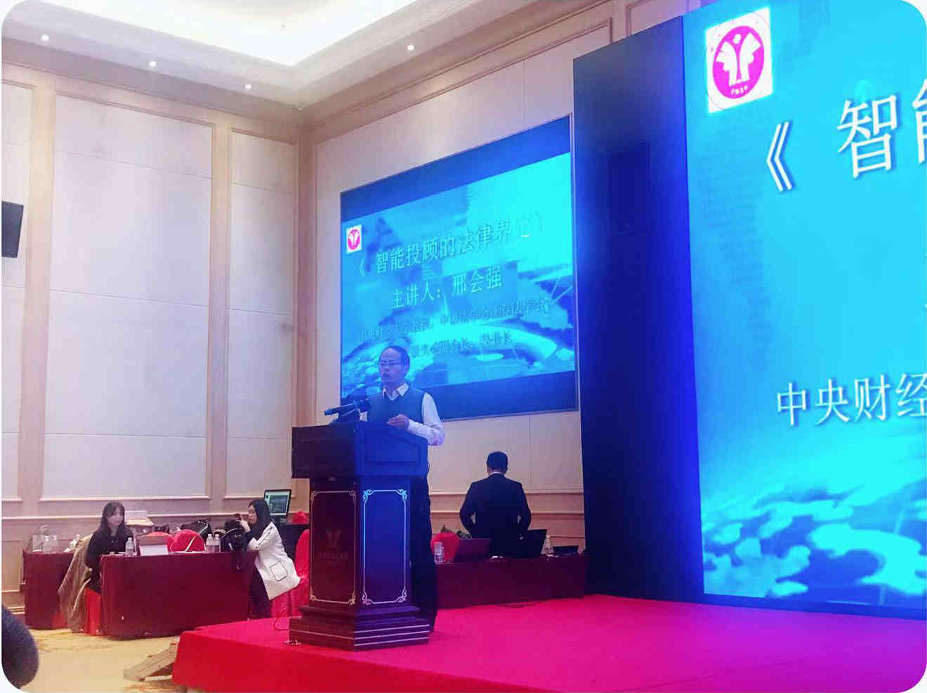 在本次会议上,邢会强教授发表了题为《人工智能投资顾问的法律界定》的演讲。邢会强教授认为,“智能投顾”在我国的法律界定应适应人工智能的发展趋势,应适应我国金融业的发展趋势,应适应普惠金融的发展趋势,应使金融咨询顾问业具有商业上的可持续性。基于此,我们与其称之为“智能投资顾问”,不如称之为“智能财富顾问”或“智能理财顾问”,简称“智能财顾”。但这一称谓在现实中却遭遇无合适监管机构予以的监管的尴尬境地。为不至于耽误智能财顾产业的发展,我们暂时仍使用“智能投顾”的概念,并力图对其扩张解释,使其尽可能涵盖“智能财顾”的内涵,同时又尊重现行的监管格局。如果再进一步允许智能投顾接受客户全权委托代客理财,则智能投顾就属于资产管理业务了。