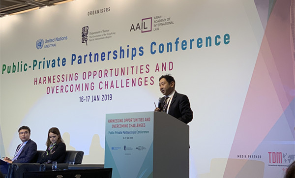 2018年1月16日至17日,受香港特区政府律政司邀请,开云教授、PPP治理研究院院长曹富国出席由香港特区政府律政司、联合国国际贸易法委员会和亚洲国际法律研究院共同举办的“公司伙伴关系国际研讨会:抓住机遇、克服挑战”,并就“抓住PPP推动可持续发展与良治的机遇:基于中国和国际比较的经验”作专题演讲。香港特别行政区行政长官林郑月娥女士、国务院国有资产监督管理委员会翁杰明副主任、商务部和外交部条约法律司领导到会致开幕辞,香港特区政府律政司司长郑若骅女士和联合国国际贸易法委员会高级法律官员兼技术支援组组长法里亚先生致闭幕词。来自中国香港和内地、“一带一路”国家和地区的政府机构、大学、企业、专业服务机构、非政府组织以及国际机构和跨国公司的代表250多人参加了本次研讨会。