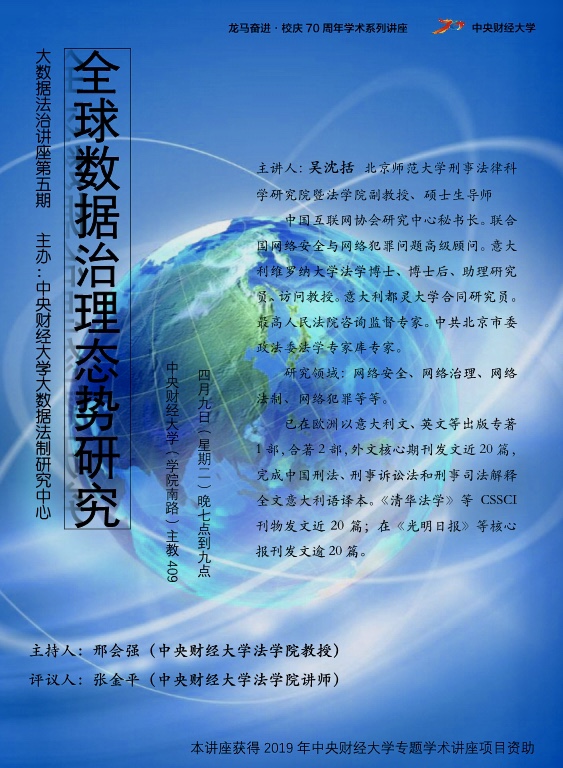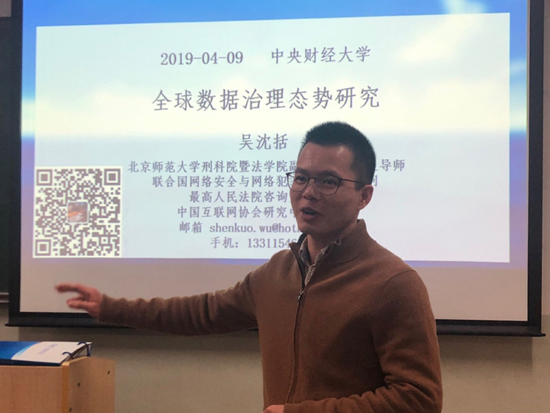 2019年4月9日晚,北京师范大学刑事法律科学研究院暨开云kaiyun官网副教授、硕士生导师吴沈括做客开云kaiyun官网第5期大数据法制讲座,作主题为”全球数据治理态势研究“的专题讲座。