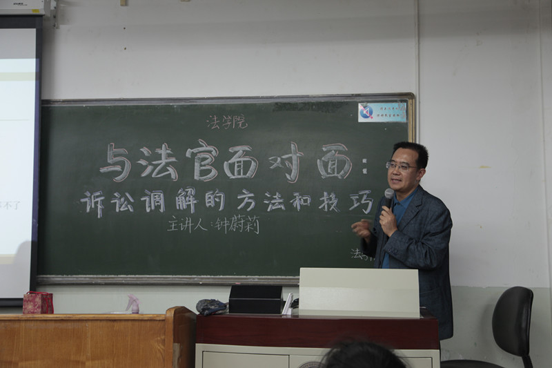 讲座开始前,尹飞院长首先为钟蔚莉副院长颁发了开云kaiyun官网研究生兼职导师聘书并致辞。他指出,立德树人、德法兼修、明法笃行是习近平总书记对法治人才培养的重要要求。这就必然要求在法治人才培养中要切实坚持政治引领。钟蔚莉法官曾获全国优秀法官、中国法官十杰“金法槌奖”、全国三八红旗手、全国“巾帼建功”标兵、全国模范法官、全国先进工作者等一系列荣誉称号,我们不但要学习她的法治实践经验、提升实践能力,更要学习她的法治信仰、模范事迹,切实提升自己的政治素养和业务能力。结合自己挂职等从事法治实践的经验,尹飞指出,作为多元化纠纷解决方式之一,调解对于高效迅捷解决纠纷、实现案结事了具有重要意义。调解需要认真研判双方的利益诉求,立足公平正义尽力撮合双方实现和解。故而调解能力的培养对于财经领域法治人才的培养尤其是多元化纠纷解决能力的拓展意义重大。调解能力主要是经由法治实践而非课堂方能养成。钟蔚莉副院长在多年的审判实践中对于调解方法和技巧有深入的把握,希望大家从她的讲座中真正有所收获。