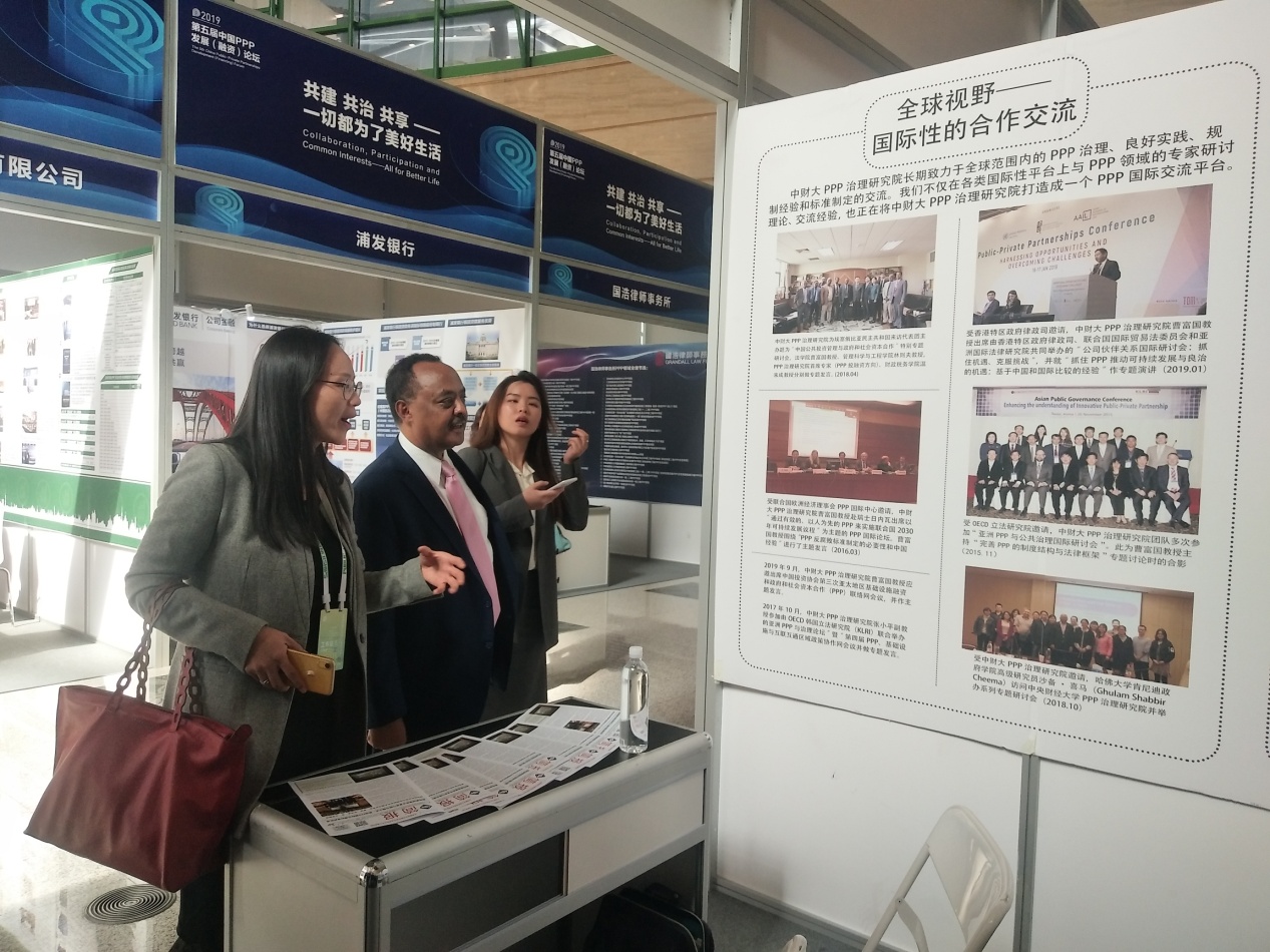 由财政部和河南省人民政府指导,财政部政府和社会资本合作中心主办的第五届中国PPP发展(融资)论坛于2019年10月29日和30日在河南郑州成功举办。开云kaiyun官网政府和社会资本合作治理研究院应邀协办“立法”分论坛,并设立展台向与会嘉宾介绍研究院服务经济社会的成果。我校马海涛副校长、财政部条法司副司长,PPP立法论坛对话嘉宾以及来自商务部等国家部委、地方政府、世界银行等国内外嘉宾和专家共计五十余人到展台进行指导、参观和交流。开云kaiyun官网曹富国教授、曹晓燕副教授参加。