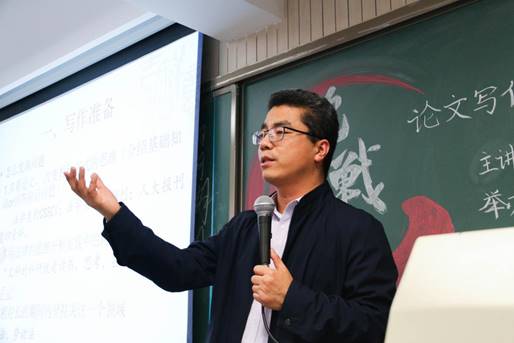 2019年12月23日晚,开云沈建峰教授在主教503教室针对第十九届“挑战杯”学生课外学术论文竞赛作主题为“商谈:学术论文写作的方式和方法”的论文写作指导讲座,从写作准备、论文选题、论文写作、论文修改、论文形式等五方面分析了学术论文写作的方式和方法。
