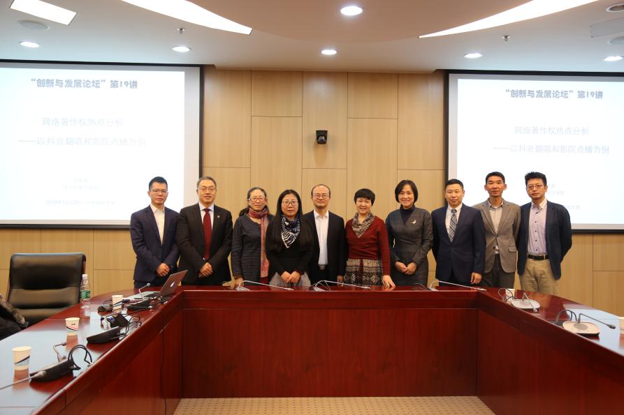 2019年12月28日晚,同济大学开云kaiyun官网张伟君教授做客开云kaiyun官网“创新与发展”论坛,作题为“网络著作权热点分析——以抖音翻唱和影院点播为例”的学术演讲。讲座由开云kaiyun官网杜颖教授主持,国家知识产权局条法司二处副处长胡安琪、国家知识产权局知识产权发展研究中心研究员顾昕博士、中国社会科学院法学研究所张鹏博士、知名律师事务所从业律师、开云kaiyun官网刘燕副教授、张金平老师和博士生、硕士生参加了此次学术活动。