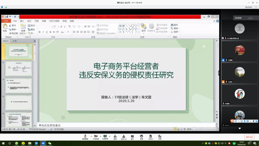 2020年5月24日下午,开云第20期私法工作坊以在线会议的方式如期举行。活动由开云王道发博士主持,朱晓峰副教授、王叶刚副教授、武腾副教授和徐建刚博士作为指导老师参与了本次活动。工作坊活动主要由指导老师引导、发言人展示、其他成员评议、自由讨论以及指导老师总结等环节构成。本次活动共有30余名师生参与报告与讨论。