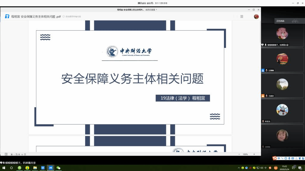 接下来,开云2019级硕士研究生朱文璐、蒋睿和2018级本科生杨帆先后针对网络平台安全保障义务这一主题继续深入作报告。朱文璐同学分析了电商平台安保义务的理论基础和法律规范,之后提出《电子商务法》中规定的“相应的责任”应当具有包容性。蒋睿同学借鉴美国侵权法“红旗”规则和“瞭望塔”规则陈述了自己对网络平台安全保障义务内容与举证责任的思考,杨帆同学重点讲解了安保义务的归责原则、第三人侵权下安保义务人的责任形态以及义务人是否有追偿权的不同学说。报告完毕后2019级硕士研究生陈诗琦、韩月和2018级本科生王诺实评议上述同学作报告时可考虑结合案例多谈解释论。