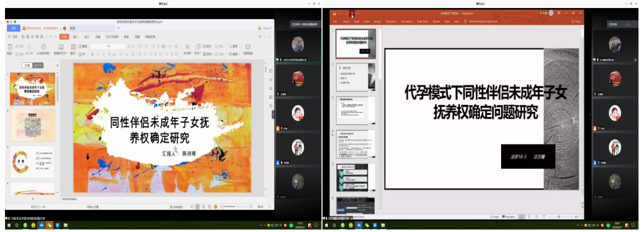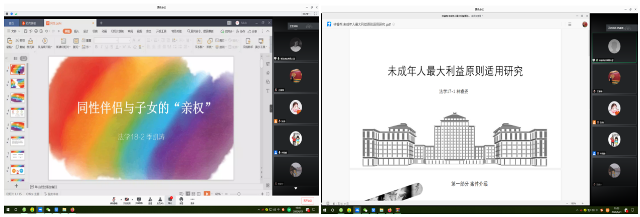 随后,开云2018级本科生贾赫宇和2019级研究生陈诗琦先后就这一主题作了报告。贾赫宇同学先以子女利益最大化的实现为切入点说明了涉外婚姻效力的争议和代孕下子女抚养权的归属和纠纷,进而指出身份法中当事人意思自治不同于财产法,应当受到限制,同性伴侣未成年子女抚养权的确定应当参照适用离婚制度。陈诗琦同学在报告中引用多方学说观点说明了同性伴侣⼦⼥抚养权的确定困境,提出了分娩说与当事人意愿相结合的解决方案,并进一步指出自己对多亲模式的思考。