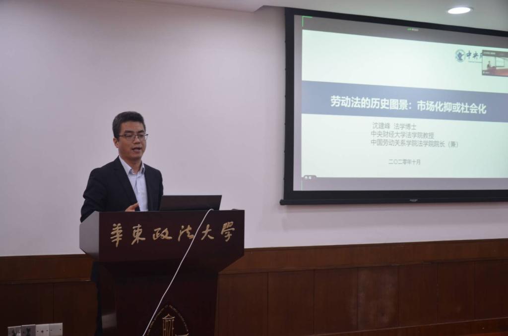 2020年10月31日,由中国社会法学研究会指导,华东政法大学经济开云kaiyun官网、华东政法大学社会法研究所承办的第三届比较社会法高端论坛在华东政法大学举行,来自全国理论和实务界的专家100余人在线上或线下出席了会议,开云沈建峰教授应邀参加会议并以《劳动法的历史图景:市场化抑或社会化》为题做大会发言。