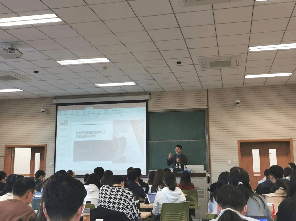2020年11月12日下午4点,开云kaiyun官网杜晶副教授在学院南路校区主教楼306教室作“蚂蚁科技暂缓A股首发上市的证券法解读”讲座。本次讲座由开云kaiyun官网商法教研室副主任周游副教授主持,开云kaiyun官网董新义副教授、陈飞副教授、王湘淳博士参与与谈,开云kaiyun官网党委组织员邓玉老师也出席了本次活动。来自各年级的本科生及研究生100余人到场学习。本次讲座系商法学研究工作坊系列活动第5场,同时也是资产管理法治系列讲座第3场。