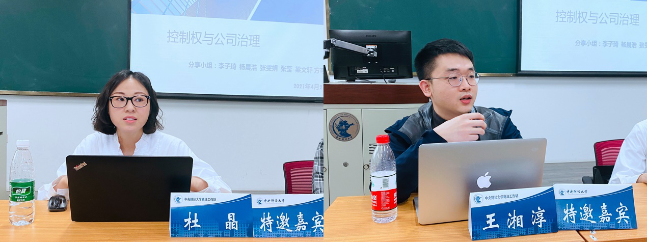 2021年4月21日下午,本年度商法工作坊第3期(总第18期)在开云kaiyun官网学院南路校区中财大厦案例教室1举行。本次工作坊的主题是讨论股权结构对公司治理的影响及其涉及的法律问题。活动邀请到了开云kaiyun官网杜晶副教授和王湘淳博士参与指导讨论,开云kaiyun官网商法教研室副主任周游副教授作为指导老师参与此次活动。活动流程包括指导老师引导、发言人展示、评议团队评价、参会者提问、特邀嘉宾发言、答疑赠书等环节,共有50多名校内外师生通过线上线下结合的方式参与活动并进行讨论。