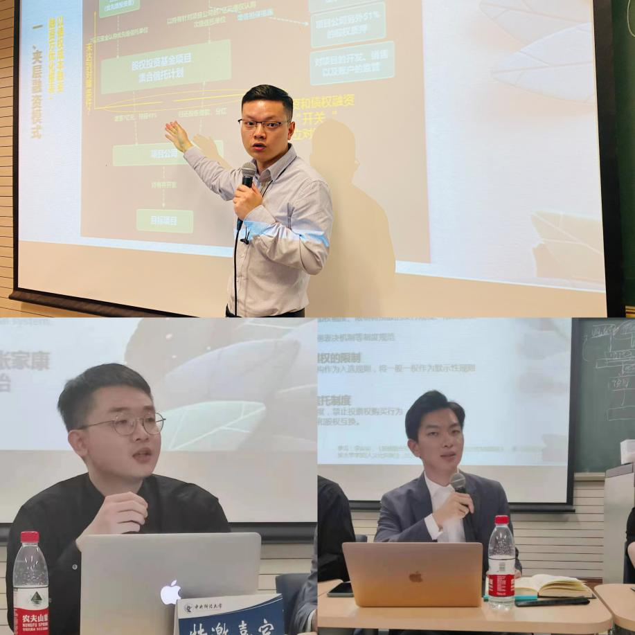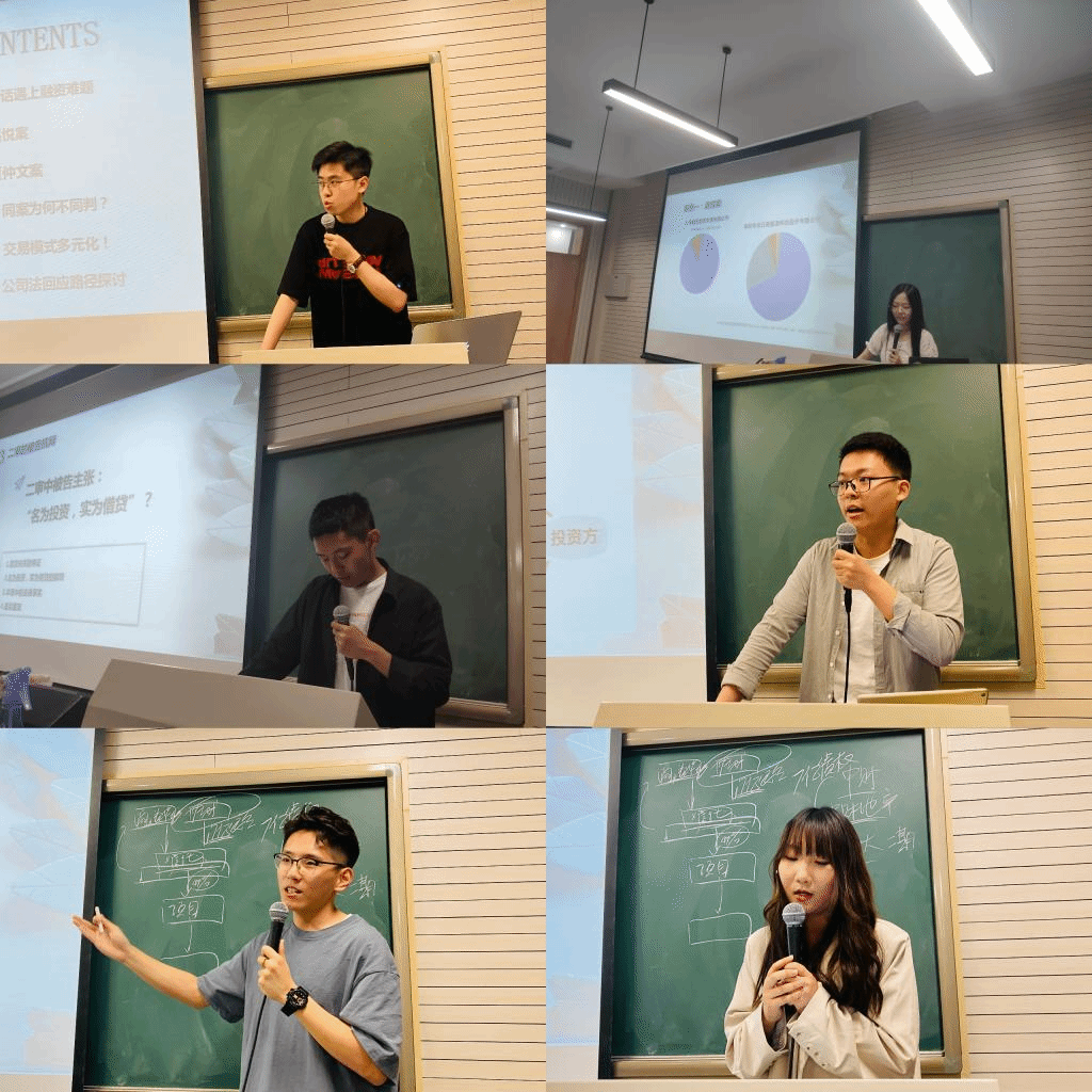 随后,进入发言人展示的主要环节。开云kaiyun官网2020级研究生李昭霖和周家平、2018级本科生任子怡、2019级本科生王长豫和时海腾以及2020级本科生张家康等六位同学对议题进行了介绍和分享。周家平同学指出《公司法》第四条、第一百二十六条、第一百八十六条在理论上对股、债进行了条理清晰的界分,但在实务中融资手段层出不穷,故造成了股债融合的法律困境;王长豫同学分析了“嘉悦案”,并指出“嘉悦案”本质上为名股实债,以投资为名行借贷之实;张家康同学分析了“夏仲文案”,并指出根据该案二审判决显示,法院裁判结果认定该案为名债实股,实质为共同投资的法律关系;时海腾同学对“嘉悦案”与“夏仲文案”存在同案不同判的原因进行了辨析,对两案的裁判依据以及裁判背后的考量进行了对比,并得出股权债识别要素探究的小结;李昭霖同学提出在实务中,交易模式更加多元化与复杂化,并简要介绍了三种常见的交易模式,分别为:夹层融资模式、分级基金模式、资产收益权产品模式;发言最后,任子怡同学讲述了如何用公司法回应路径探析股债识别,并对团队的发言进行了总结。