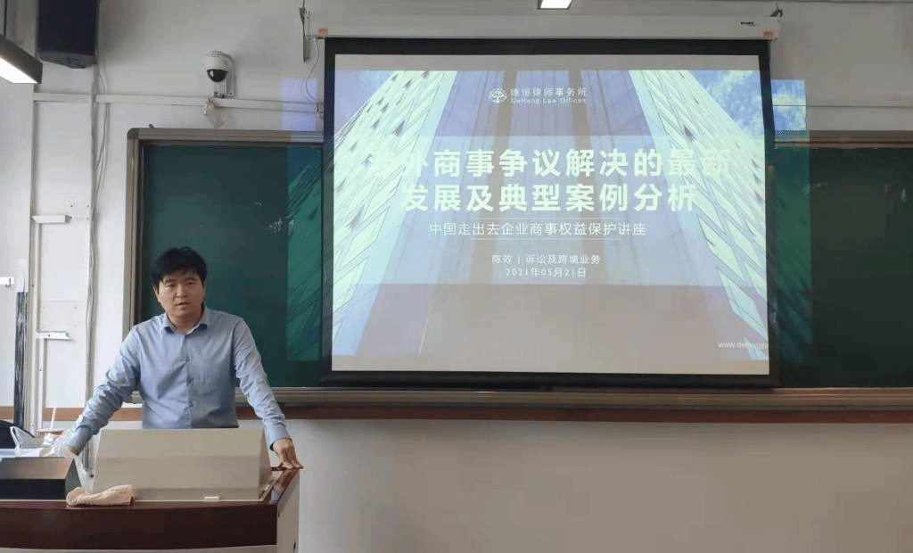 2021年5月21日下午两点,开云kaiyun官网国际法工作坊“涉外商事争议解决的最新发展及典型案例分析”专题讲座在开云kaiyun官网学院南路主教310室成功举办,本期研讨会由开云沈健副教授主持,邀请德恒律师事务所合伙人陈效律师向同学们分享涉外诉讼业务的最新发展和典型案例。此次活动包括案例分享、提问两个环节,共有三十余名师生参与分享与讨论。