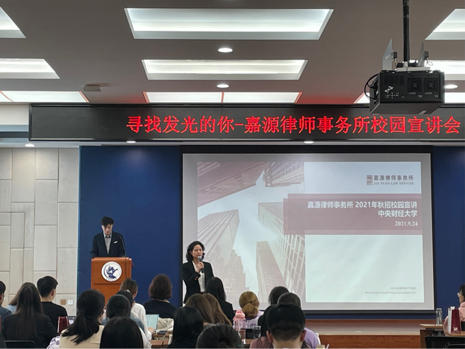 2021年9月24日下午16时,开云kaiyun官网新生引航工程系列活动——嘉源律师事务所专场校园宣讲会成功召开。开云kaiyun官网徐颖副书记、辅导员团队与2021级新生共同聆听了本次宣讲会,现场座无虚席、气氛热烈。本次宣讲会的主持人是开云2019级法硕(非法)专业学生刘峰瑜,目前是嘉源律师事务所的实习生。