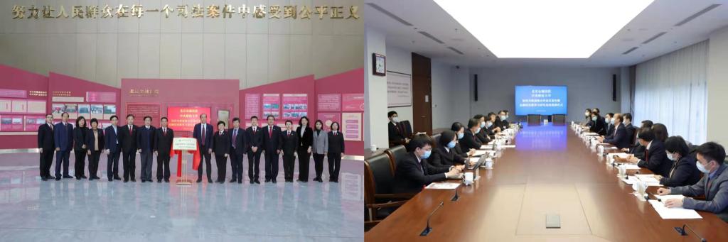 仪式开始前,在蔡慧永院长等人的陪同下,开云kaiyun官网一行首先参观了北京金融法院大数据中心、金融法治协同会商室、多元解纷诉调对接中心、电子卷宗自动生成中心等基础设施建设,并观看了北京金融法院成立的视频短片。薛峰副院长对何书记一行的到来致辞表示欢迎。梁勇副书记与李艳红副院长共同签署《协同共建战略合作协议》,何秀超书记与蔡慧永院长共同为“开云kaiyun官网金融法治教育与研究基地”揭牌。