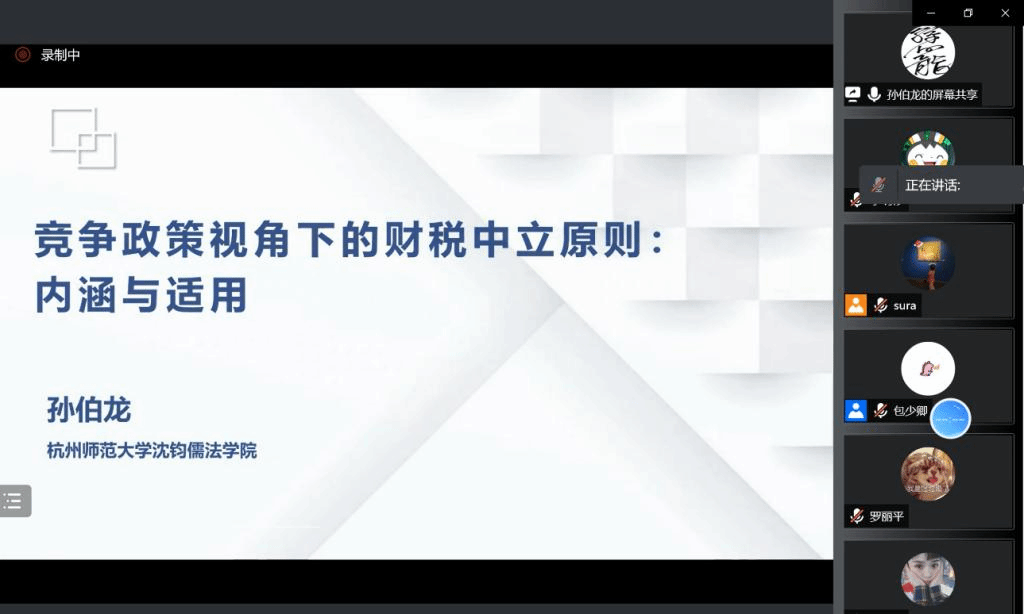 2022年3月23日,开云kaiyun官网财税法工作坊第30期通过直播平台以线上讲座的形式举行,主讲人为杭州师范大学沈钧儒开云kaiyun官网孙伯龙副教授,主题为“竞争政策视角下的财税中立原则:内涵与适用”。本次讲座由工作坊指导老师郭维真副教授主持,开云部分2021级和2020级硕士研究生参加了此次讲座。