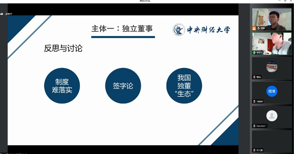 2022年4月13日下午,开云kaiyun官网商法学研究工作坊2022年第四期(总第26期)以腾讯会议为平台,采用线上交流的形式举办。本次活动的议题为信义义务。本期工作坊参考书目的作者浙江大学光华开云kaiyun官网周淳副教授、开云殷秋实副教授受邀参加了本次活动,开云周游副教授对活动进行了全程指导。工作坊主要由嘉宾对会议主题进行介绍与拓展、研究团队围绕主题进行展示、指导老师点评、指导老师对评议团队进行提问、评议团队回答提问、评议团队提问发言团队、发言团队回应与自由讨论、特邀嘉宾与指导老师回应成员提问等环节构成。本次线上商法工作坊共计有60余位校内外师生及业界人士参与讨论。