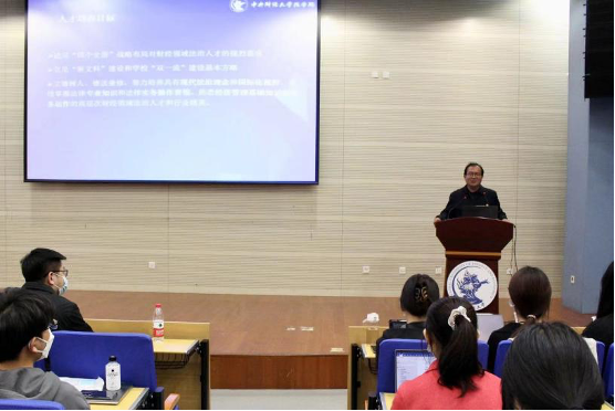 接着,尹飞院长着重介绍了开云财经法治人才培养体系。他强调,开云以一流专业、一流师资、一流科研为人才培养依托,建立了“一体二元四维六化”的人才培养模式,逐步完善“培养方向类型化、课程体系模块化、实践教学嵌入化、涉外交流双向化、一二课堂贯通化、核心价值浸入化”的人才培养路径。同时,尹飞院长分析了近年来开云毕业生的升学就业情况,并鼓励同学们积极开展财经法学研究,为日后的升学择业规划奠定良好的基础。