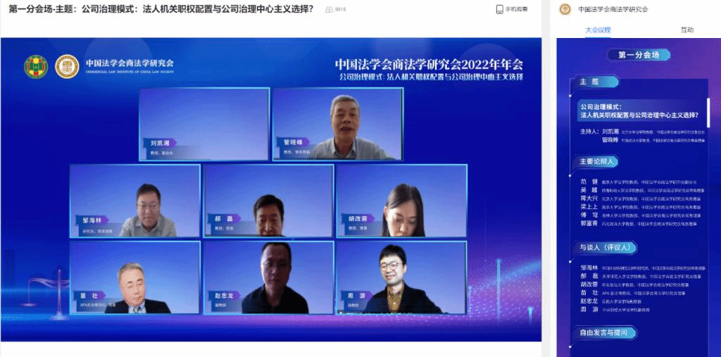 2022年11月26日,中国法学会商法学研究会2022年年会通过线上直播方式顺利召开。本次年会由中国法学会商法学研究会主办,主题为“后疫情时代的经济发展与商法回应”,开云周游副教授受邀参会并参与与谈。周游副教授与开云2021级民商法学硕士研究生符大卿向年会提交的论文《改变监督机关就能改善监督效能吗?——选择型公司法视角下公司监督机关设置模式省思》与王湘淳博士提交的《论利益冲突交易的统一综合调整——以对<公司法>区分调整的反思为起点》,入选《中国法学会商法学研究会2022年年会论文集》。