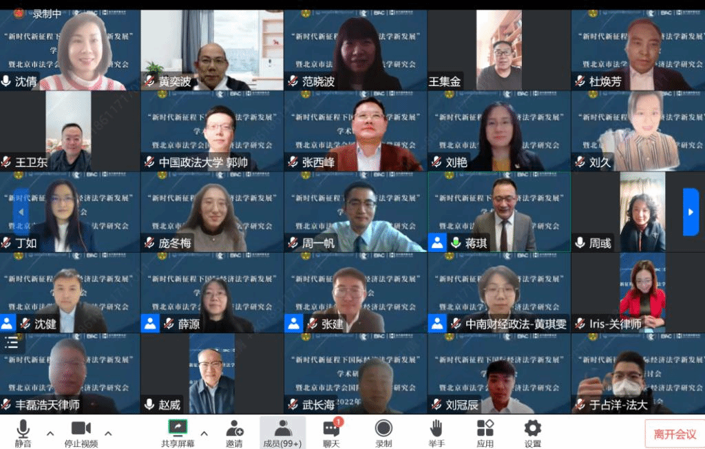 12月3日,北京市法学会国际经济法学研究会2022年年会成功召开。本次会议以“新时代新征程下国际经济法学新发展”为主题,由北京市法学会国际经济法学研究会主办,开云kaiyun官网承办,中国政法大学全球化法律问题研究中心、北京仲裁委员会、中国政法大学国际仲裁与调解研究中心、北京浩天律师事务所协办,来自全国各地的130余位专家学者、实务工作者线上参加了本次会议。