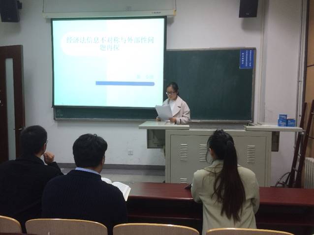 首先,高天同学介绍了本次活动的主题为“经济法信息不对称与外部性问题再探”,活动分三个部分依次进行,第一,专题报告人向小组成员汇报文献综述撰写情况;第二,小组成员就本次活动主题进行讨论交流;第三,小组组长进行总结发言。
