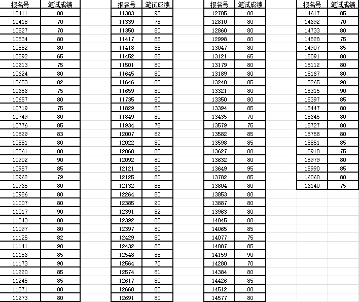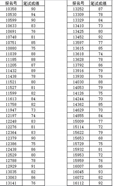 笔试。现公布成绩如下: