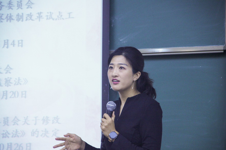 讲座伊始,陈禹橦检察官首先列明新时期检察机关的主要工作,并分别对其进行介绍。立足于新时期,她从民事公益诉讼与行政公益诉讼两个方面阐述了公益诉讼检察这一重要工作。随后,陈禹橦检察官从我国监察体制改革切入,结合近五年来我国相关领域的立法进程,全面讲解了新时期检察机关工作的发展,帮助同学们全面认识了我国的监察体制及检察院的具体工作。