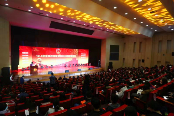 12月4日,由中共北京市委教育工作委员会、北京市教育委员会主办,北京教育音像报刊总社、北京市青少年法治教育中心承办,我校协办的“2018年北京高校国家宪法日主题教育活动”在学院南路校区206报告厅隆重举行。教育部政策法规司、北京市委教育工委、北京市司法局、团市委领导、各高校主管法治工作的校领导及部门负责人和我校师生共500余人参加活动。我校党委副书记、纪委书记陈明出席。